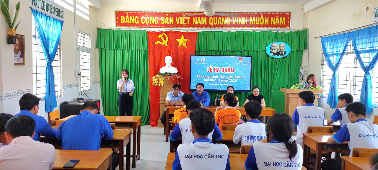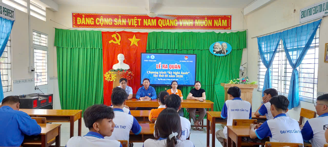 Nhằm phát huy vai trò xung kích, tình nguyện của tuổi trẻ trong tham gia các hoạt động vì cộng đồng, Ban Chấp hành Chi hội Sinh viên Thoại Sơn đã phối hợp với Xã đoàn Tây Phú tổ chức chương trình “Kỳ nghỉ xanh” lần thứ III năm 2026. Chương trình “Kỳ nghỉ xanh” có 24 hội viên, sinh viên Thoại Sơn đang theo học tại Trường Đại học Cần Thơ tham gia. Với tinh thần nhiệt huyết, trách nhiệm, Chi hội sinh viên Thoại Sơn đã triển khai nhiều hoạt động thiết thực, ý nghĩa gắn thực tế của địa phương thông qua các hoạt động như: thực hiện công trình thanh niên; tổ chức gian hàng ẩm thực gây quỹ, kết hợp tạo sân chơi vui tươi, bổ ích cho các em học sinh; tham gia dọn dẹp vệ sinh khu vực nhà bia tưởng niệm, góp phần giữ gìn cảnh quan môi trường xanh – sạch – đẹp. Đồng thời, Chi hội đã trao tặng 05 phần quà cho các gia đình chính sách trên địa bàn xã, mỗi phần trị giá 200.000 ngàn đồng, qua đó, thể hiện sự quan tâm, tri ân đối với người có công với cách mạng. Bên cạnh các hoạt động trực tiếp, Chi hội sinh viên Thoại Sơn còn đẩy mạnh công tác vận động nguồn lực thông qua việc đăng tải thông tin gây quỹ trên nhóm Facebook “Chi hội sinh viên Thoại Sơn, Đại học Cần Thơ”. Nguồn kinh phí vận động được dùng để hỗ trợ, trao quà cho các em học sinh có hoàn cảnh khó khăn và các gia đình chính sách tại địa phương. “Kỳ nghỉ xanh” là hoạt động thường niên mang ý nghĩa thiết thực, không chỉ tạo môi trường để hội viên, sinh viên rèn luyện kỹ năng, nâng cao tinh thần đoàn kết mà còn góp phần lan tỏa những giá trị tốt đẹp trong cộng đồng. Qua đó, tiếp tục khẳng định vai trò xung kích, sáng tạo của tuổi trẻ trong tham gia xây dựng nông thôn mới, bảo vệ môi trường và phát triển kinh tế – xã hội tại địa phương.