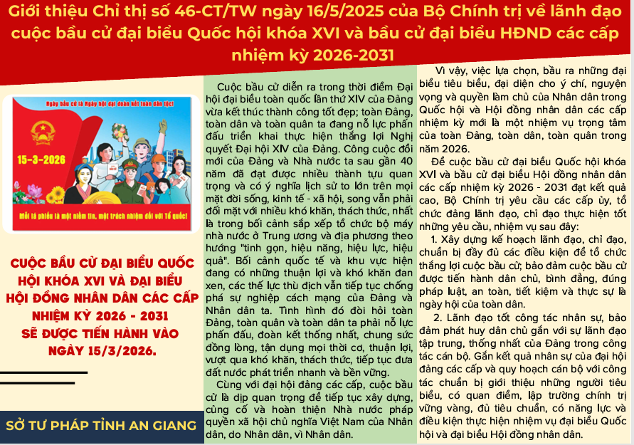 CUỘC BẦU CỬ ĐẠI BIỂU QUỐC HỘI VÀ HỘI ĐỒNG NHÂN DÂN CÁC CẤP NHIỆM KỲ 2026 -2031 SẼ ĐƯỢC TIẾN HÀNH VÀO NGÀY 15/3/2026
