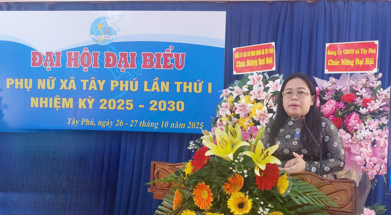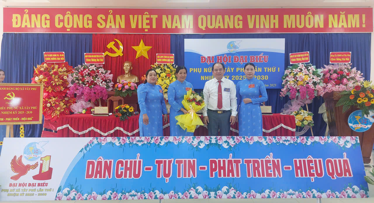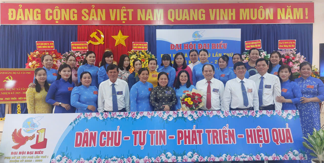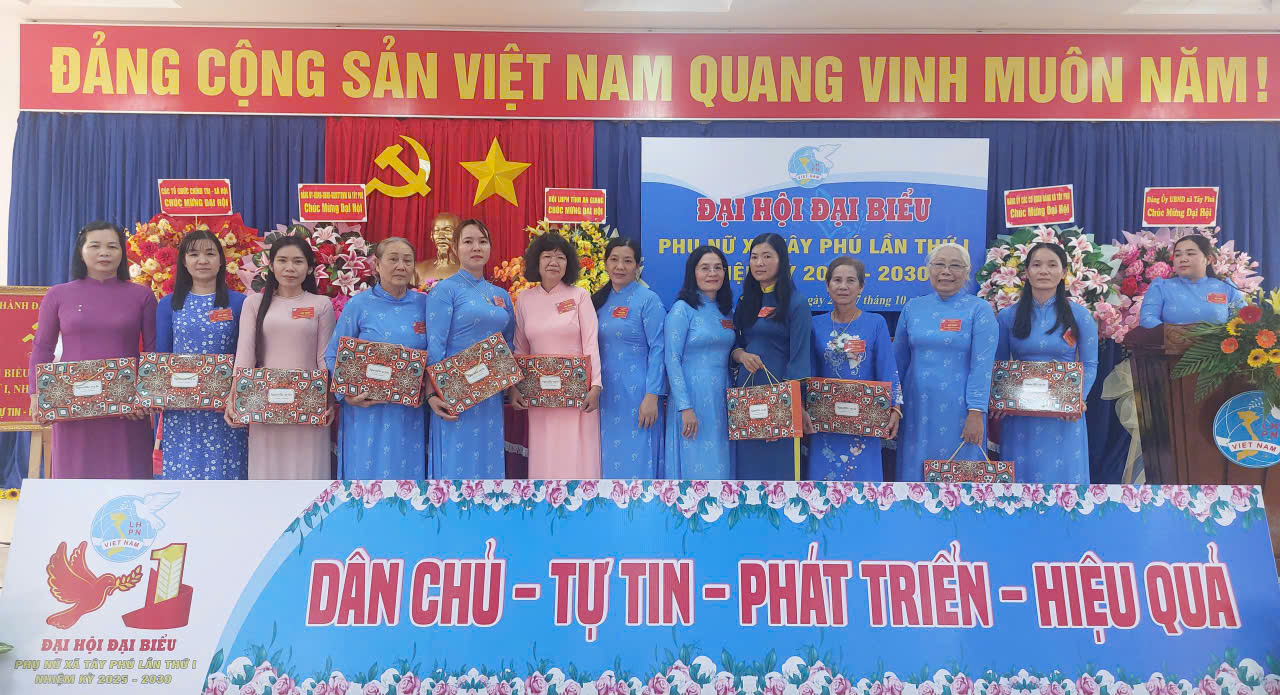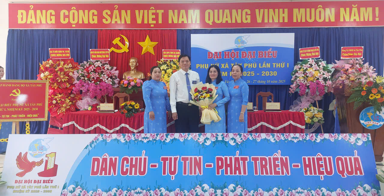Sáng 27/10/2025, Hội Liên hiệp Phụ nữ (LHPN) xã Tây Phú tổ chức Đại hội Đại biểu lần thứ I, nhiệm kỳ 2025-2030. Tham dự có bà Trương Thanh Thúy – Tỉnh ủy viên, Phó Chủ tịch UBMTTQVN, Chủ tịch Hội LHPN tỉnh An Giang, đồng chí Phạm Quang Căn – Bí thư Đảng ủy, Chủ tịch HĐND xã, đồng chí Phạm Quyết Chiến – Phó Bí thư thường trực Đảng ủy và các đồng chí trong Ban Thường vụ Đảng ủy xã dự đại hội.
