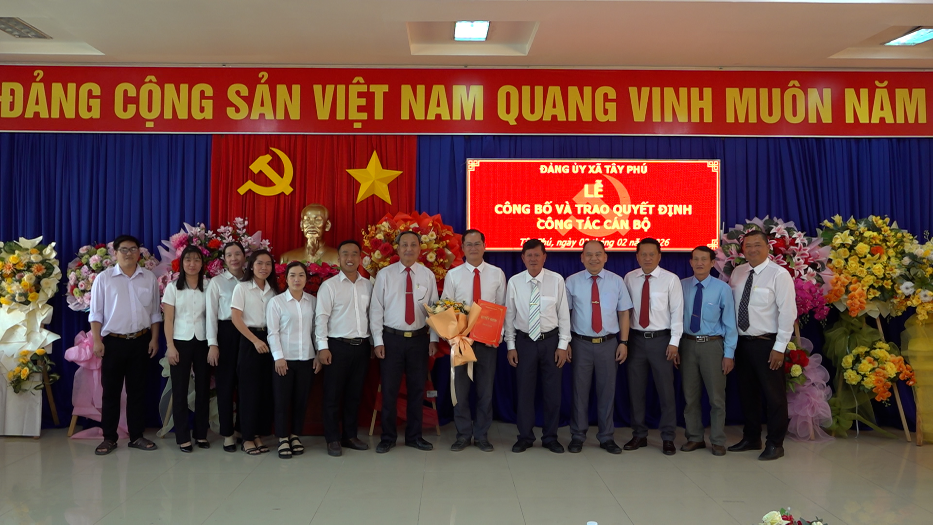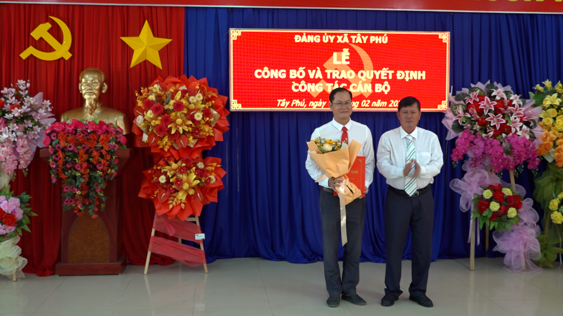 Chiều ngày 02/02/2026, Đảng ủy xã Tây Phú tổ chức Lễ công bố và trao quyết định về công tác cán bộ. Tham dự buổi lễ có ông Phạm Quang Căn – Bí thư Đảng ủy, Chủ tịch HĐND xã; ông Phạm Quyết Chiến – Phó Bí thư Thường trực Đảng ủy; ông Lê Hồng Dân – Phó Bí thư Đảng ủy, Chủ tịch UBND xã, cùng lãnh đạo các ban, ngành, đoàn thể xã.