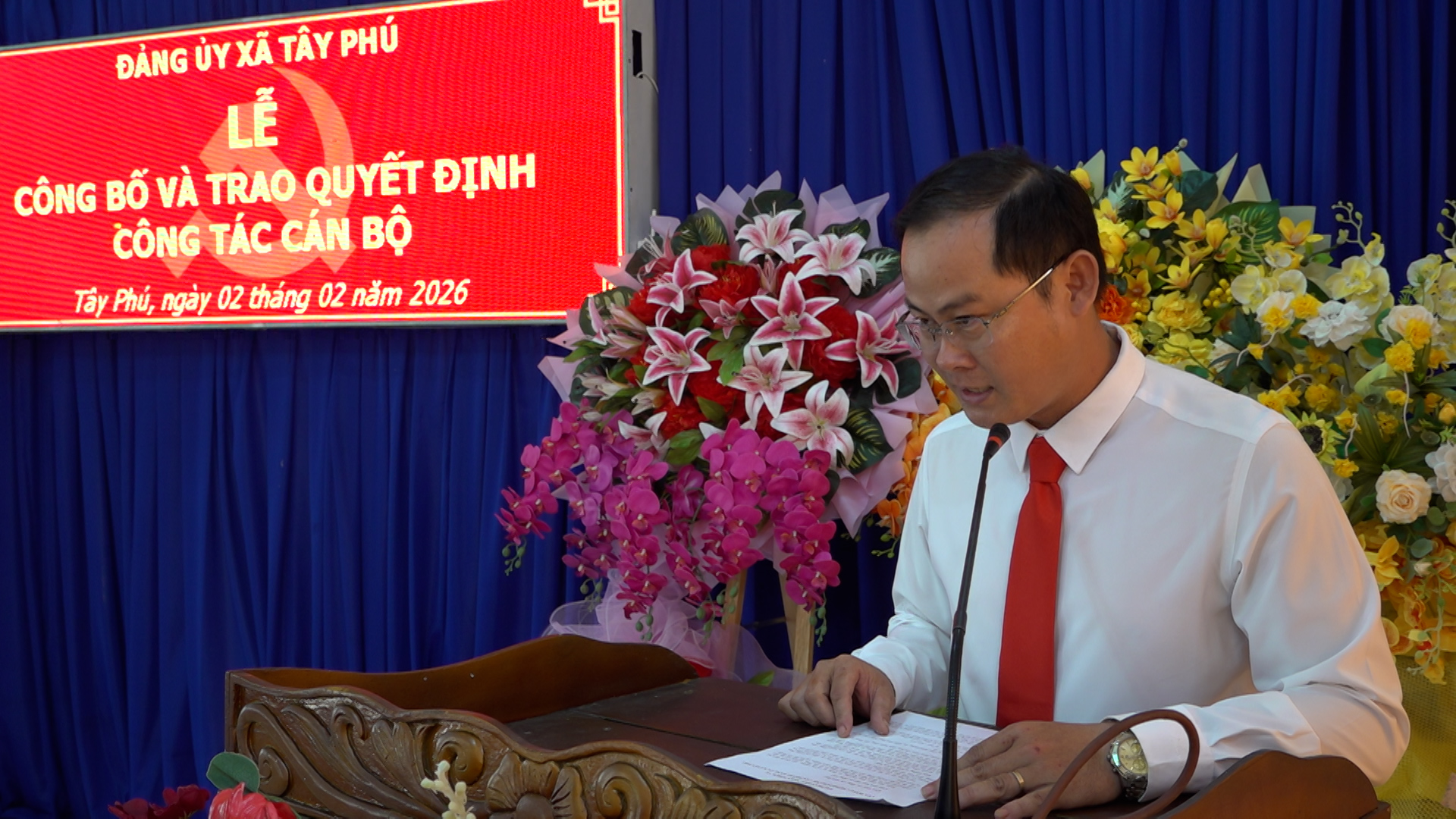 Hội nghị đã công bố Quyết định số 137-QĐ/ĐU, ngày 27/01/2026 của Ban Thường vụ Đảng ủy xã về việc bổ nhiệm đồng chí Nguyễn Thanh Sang, chuyên viên Văn phòng Đảng ủy, giữ chức vụ Phó Chánh Văn phòng Đảng ủy xã Tây Phú, thời hạn bổ nhiệm 05 năm.