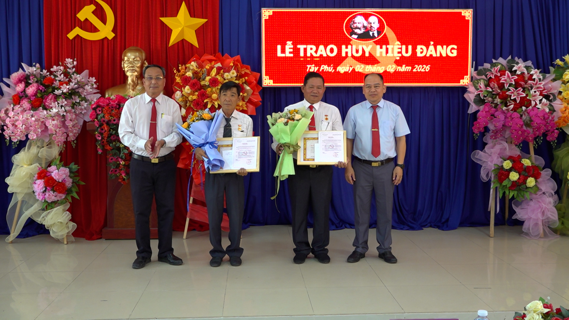Tại buổi lễ, Đảng ủy xã đã công bố Quyết định số 161-QĐ/TU, ngày 13/01/2026 của Ban Thường vụ Tỉnh ủy An Giang về việc trao tặng Huy hiệu Đảng cho 03 đảng viên ưu tú trên địa bàn xã, trong đó có 02 đảng viên nhận Huy hiệu 30 năm tuổi Đảng và 01 đảng viên nhận Huy hiệu 40 năm tuổi Đảng.