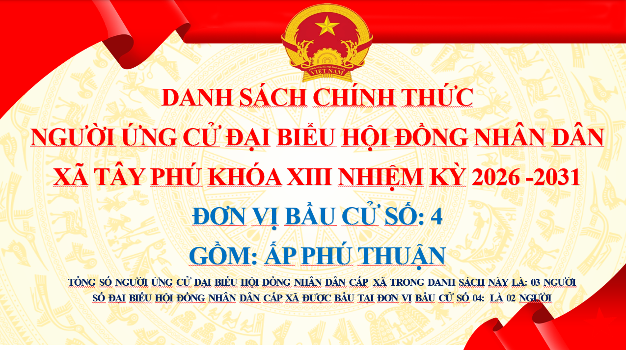DANH SÁCH CHÍNH THỨC NHỮNG NGƯỜI ỨNG CỬ ĐẠI BIỂU HỘI ĐỒNG NHÂN DÂN XÃ TÂY PHÚ KHÓA XIII, NHIỆM KỲ 2026-2031, ĐƠN VỊ BẦU CỬ SỐ 4, XÃ TÂY PHÚ