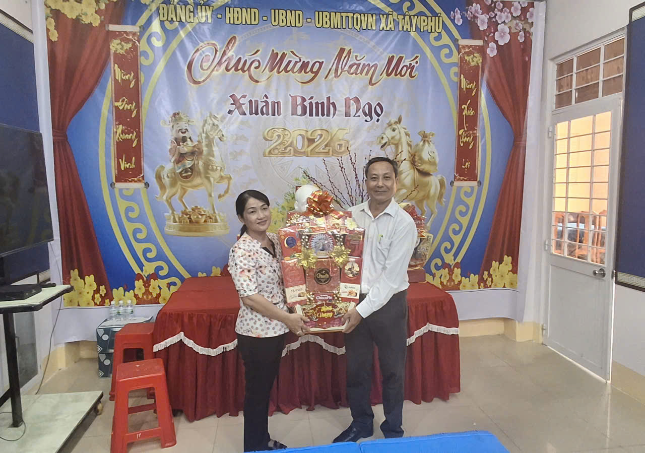 Nhân dịp Tết Nguyên đán Bính Ngọ năm 2026, Đảng ủy, Uỷ ban Nhân dân, Ủy ban Mặt trận Tổ quốc Việt Nam xã Vĩnh Trạch do bà Trần Thị Phong Lan – Phó Bí thư Thường trực Đảng ủy xã Vĩnh Trạch làm Trưởng đoàn đã đến thăm, chúc Tết Đảng bộ, chính quyền và Nhân dân xã Tây Phú. Tiếp đoàn có ông Lê Hồng Dân – Phó Bí thư Đảng ủy, Chủ tịch UBND xã Tây Phú, cùng đại diện lãnh đạo các ban, ngành, đoàn thể của xã.