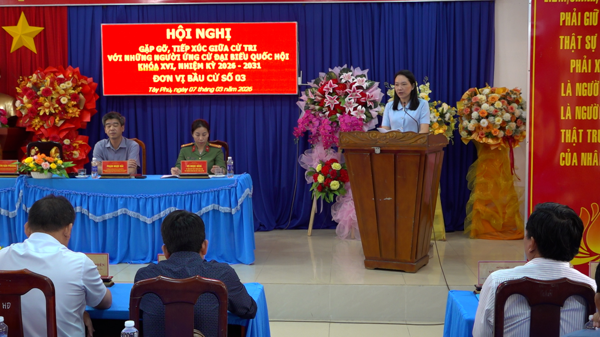 Sáng ngày 07/3/2026, Ủy ban MTTQ Việt Nam tỉnh An Giang phối hợp với Ủy ban MTTQ Việt Nam xã Tây Phú tổ chức Hội nghị gặp gỡ, tiếp xúc cử tri với những người ứng cử đại biểu Quốc hội khóa XVI, đơn vị bầu cử số 3.
