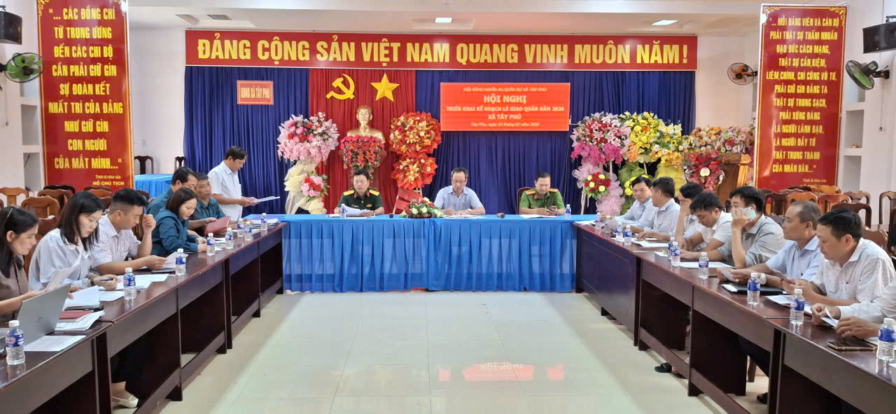 Hội đồng Nghĩa vụ quân sự xã Tây Phú vừa tổ chức hội nghị triển khai kế hoạch tổ chức Lễ giao nhận quân năm 2026. Ông Lê Hồng Dân – Phó Bí thư Đảng ủy, Chủ tịch UBND xã, Chủ tịch Hội đồng Nghĩa vụ quân sự xã chủ trì hội nghị.
