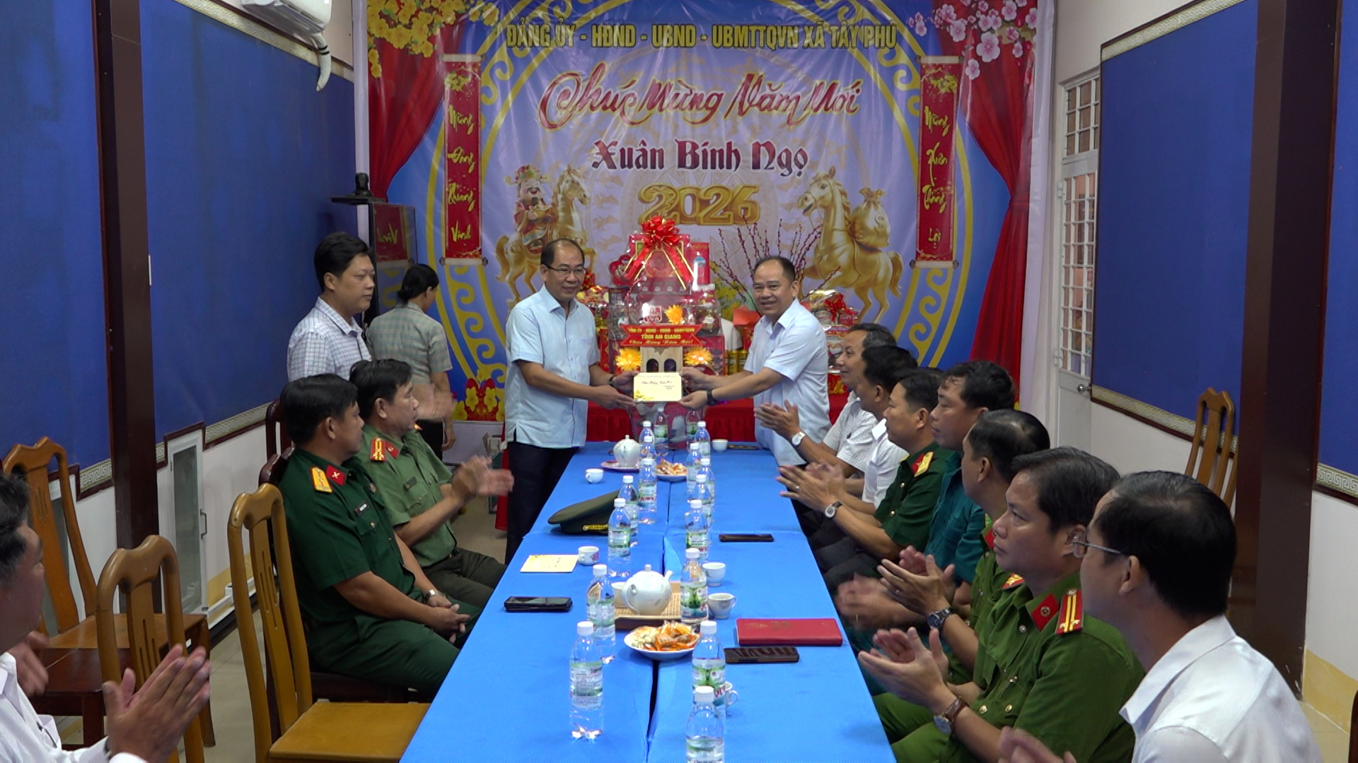 Tại buổi đến thăm, ông Nguyễn Việt Thắng - Tỉnh ủy viên, Phó Chủ nhiệm Thường trực Ủy ban Kiểm tra Tỉnh ủy An Giang đã gửi lời chúc mừng năm mới, chúc Đảng bộ, chính quyền và Nhân dân xã Tây Phú đón Tết vui tươi, an lành, hạnh phúc; đồng thời ghi nhận và đánh giá cao những kết quả mà địa phương đã đạt được trong thời gian qua. Đồng thời, mong muốn trong năm mới, xã Tây Phú tiếp tục phát huy tinh thần đoàn kết, nỗ lực hoàn thành tốt các chỉ tiêu, nhiệm vụ phát triển kinh tế – xã hội đã đề ra.
