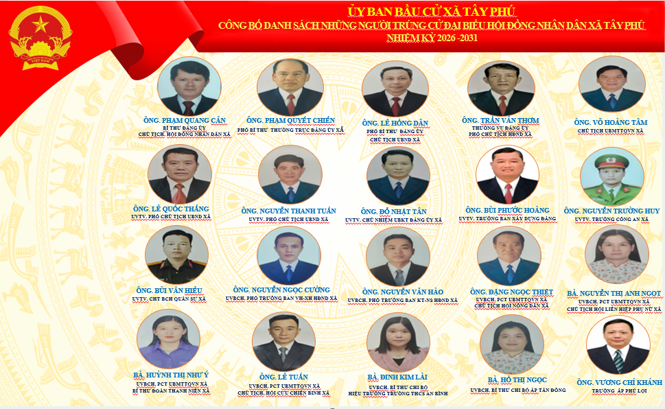 ỦY BAN BẦU CỬ XÃ TÂY PHÚ CÔNG BỐ KẾT QUẢ BẦU CỬ VÀ DANH SÁCH NHỮNG NGƯỜI TRÚNG CỬ ĐẠI BIỂU HĐND XÃ TÂY PHÚ KHÓA XIII, NHIỆM KỲ 2026-2031