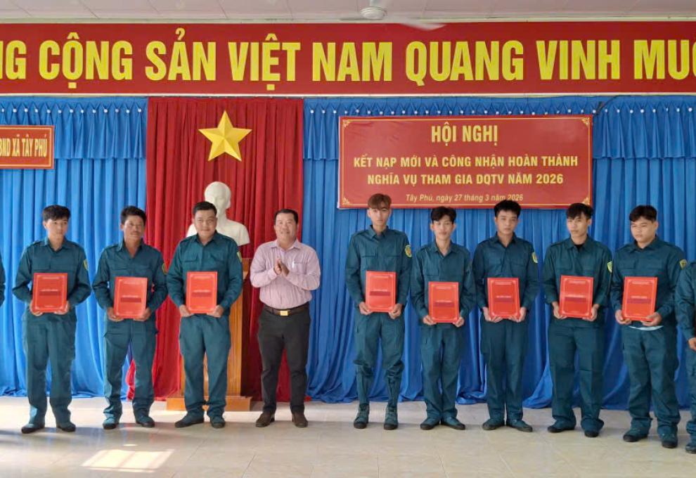 Ban chỉ huy quân sự xã Tây Phú vừa tổ chức hội nghị kết nạp mới và công nhận hoàn thành nghĩa vụ tham gia dân quân tự vệ