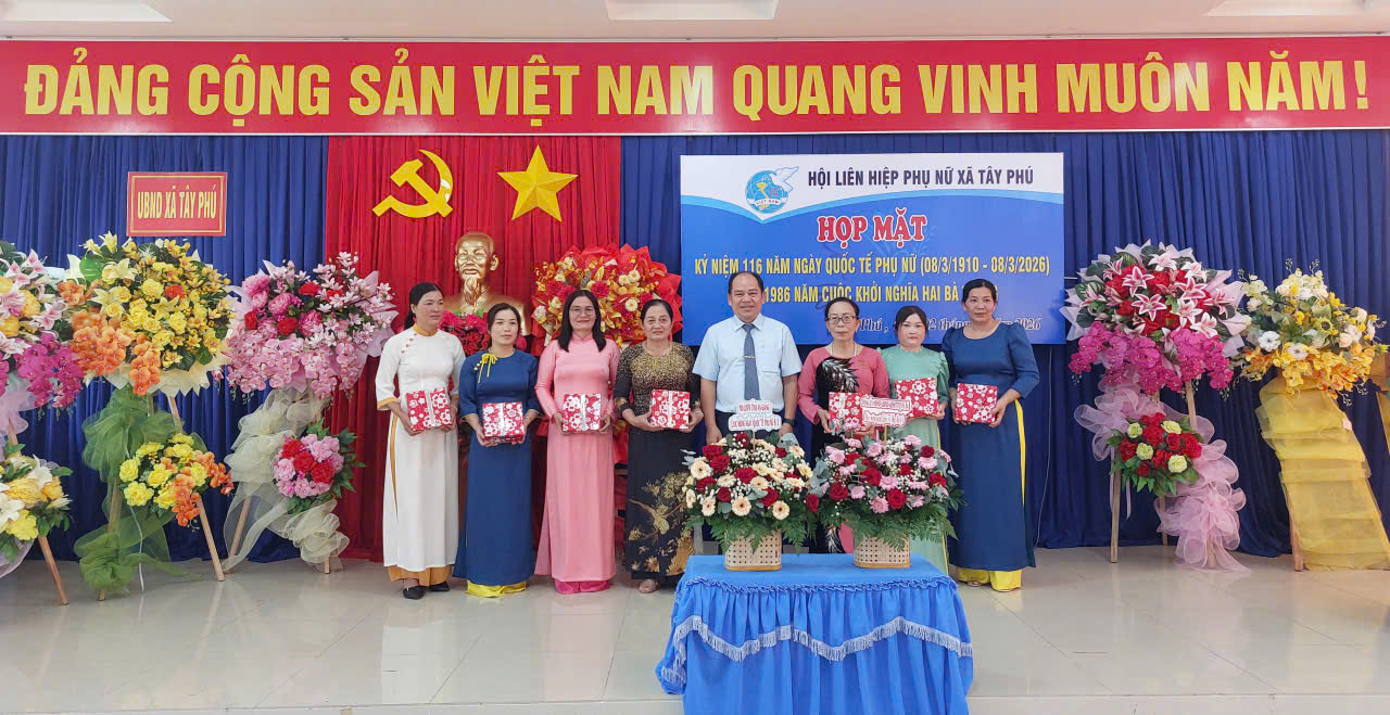 Chiều ngày 02/03/2026, Hội LHPN xã Tây Phú vừa tổ chức họp mặt kỷ niệm 116 năm Ngày Quốc tế Phụ nữ (8/3/1910 – 8/3/2026) và 1986 năm Khởi nghĩa Hai Bà Trưng. Ông Phạm Quyết Chiến – Phó Bí thư thường trực Đảng ủy xã Tây Phú đã đến dự.