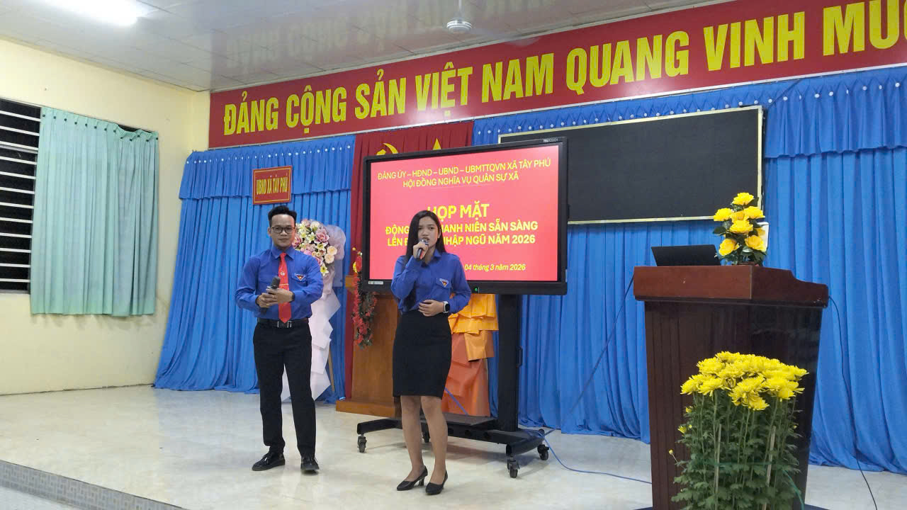 Trong hai ngày 04 và 05/3/2026, Hội đồng Nghĩa vụ quân sự xã Tây Phú tổ chức Lễ giao nhận quân năm 2026 đưa thanh niên ưu tú lên đường thực hiện nghĩa vụ thiêng liêng đối với Tổ quốc.