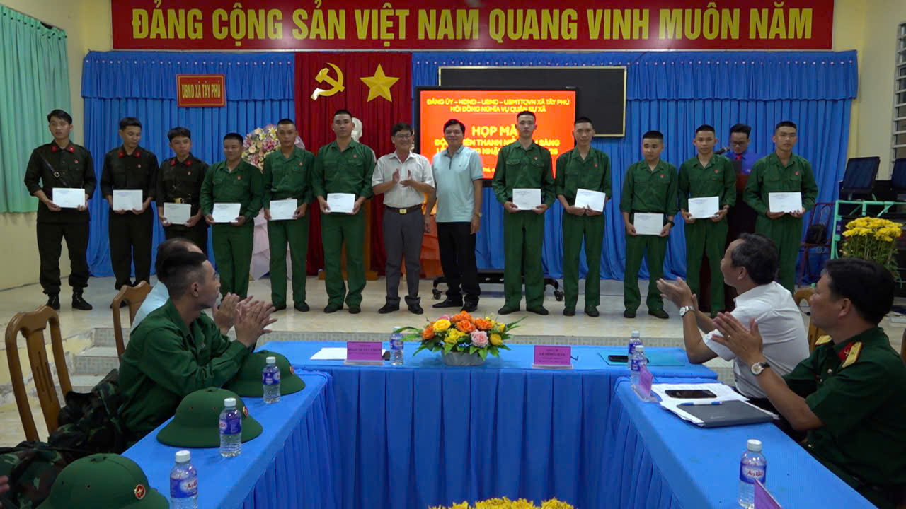 Đúng 4 giờ sáng ngày 05/3, 22 thanh niên của xã được đưa đến Quảng trường Hai Bà Trưng (ấp 4, xã Tri Tôn, tỉnh An Giang) để tham dự Lễ giao nhận quân. Trong đó, có 19 thanh niên thực hiện nghĩa vụ quân sự và 3 thanh niên thực hiện nghĩa vụ tham gia Công an nhân dân. Trong không khí trang nghiêm, phấn khởi, các tân binh thể hiện quyết tâm sẵn sàng lên đường làm nhiệm vụ, tiếp bước truyền thống quê hương Tây Phú anh hùng. Sự hiện diện, động viên của lãnh đạo địa phương và người thân đã tiếp thêm niềm tin, ý chí để các thanh niên an tâm công tác, phấn đấu rèn luyện, hoàn thành xuất sắc nhiệm vụ được giao.