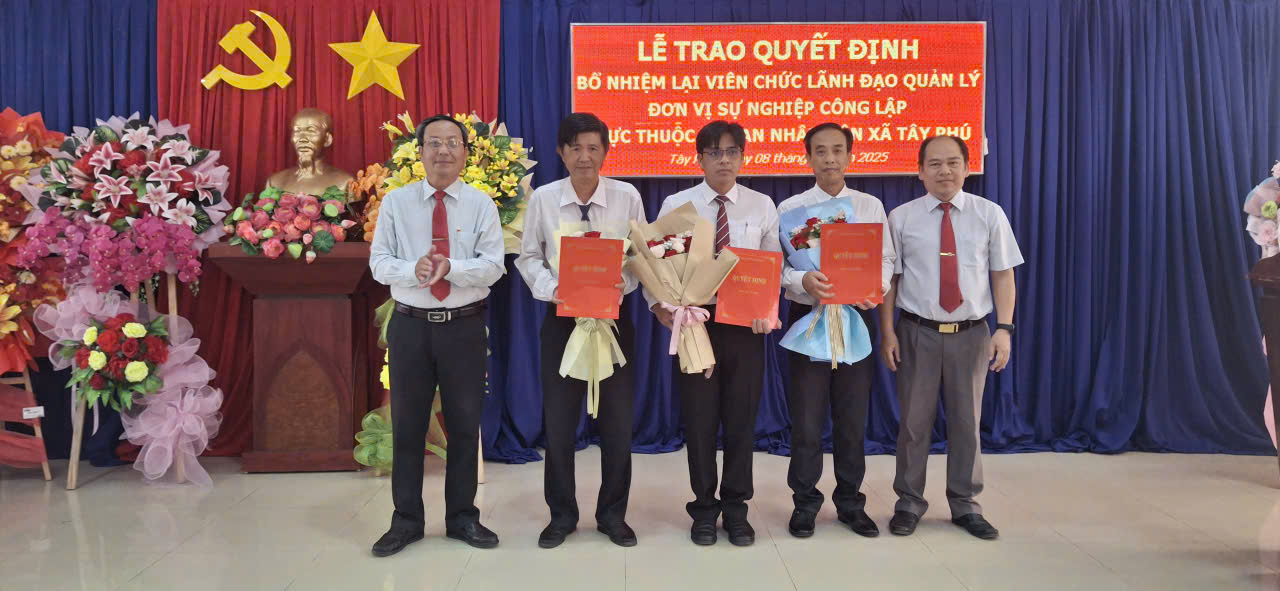 XÃ TÂY PHÚ TRAO QUYẾT ĐỊNH BỔ NHIỆM LẠI CÁC CHỨC DANH LÃNH ĐẠO ĐƠN VỊ SỰ NGHIỆP CÔNG LẬP