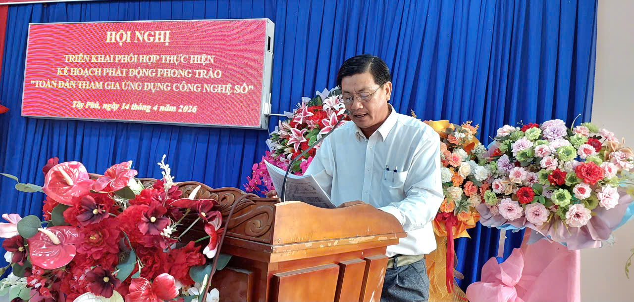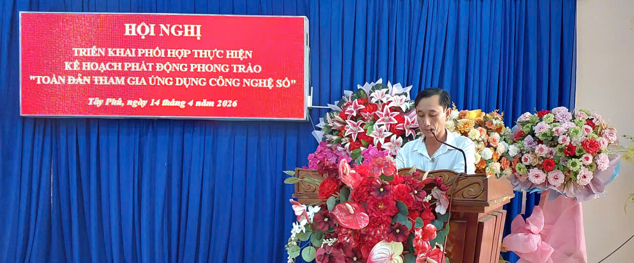 Uỷ ban Nhân dân xã Tây Phú vừa tổ chức Hội nghị triển khai Kế hoạch thực hiện phong trào “Toàn dân tham gia ứng dụng công nghệ số” trên địa bàn xã. Ông Nguyễn Thanh Tuấn – Phó Chủ tịch Uỷ ban Nhân dân xã chủ trì hội nghị.